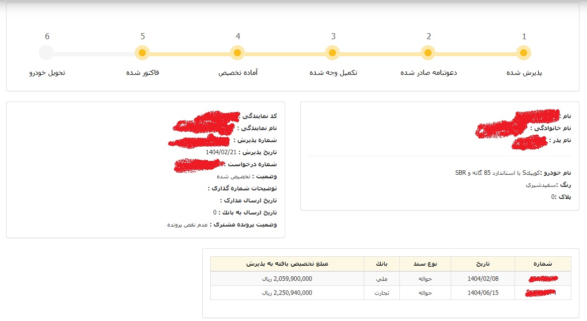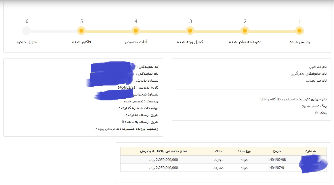 سلام خدمت دوستان عزیز ، بالاخره گره ماهم باز شد و فاکتور شدم امیدوارم قسمت همه شما عزیزان بشه. گفتم عضو سایت بشم و اسکرین بذارم تا شماهم از خوشحالی من خوشحال بشین . واریزی یکم مهر ماه سال هزار و چهارصد و چهار هستم موعد تحویلم هفته چهارم آبان ماه هزار و چهارصد و چهار