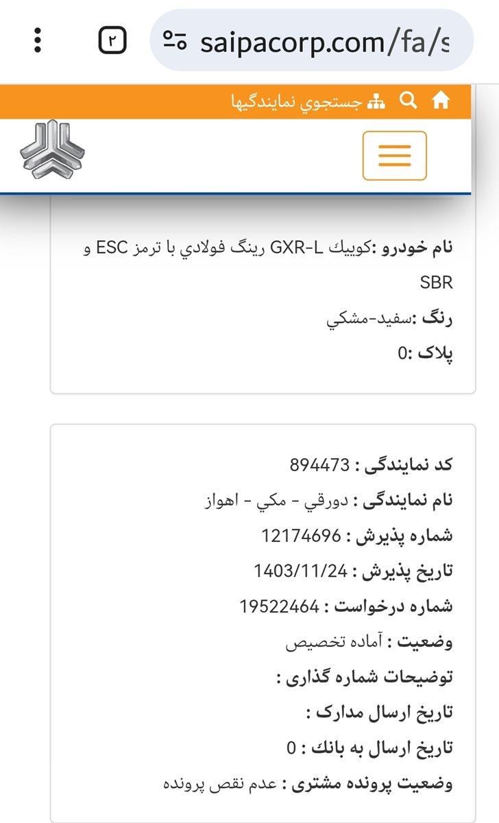 ساینا پیش فروش اسفند 403 : من حضوری رفتم شرکت سایپا من تکمیل وجه 3 مهر ماه هستم به من گفت اواسط بهمن فاکتور میشی