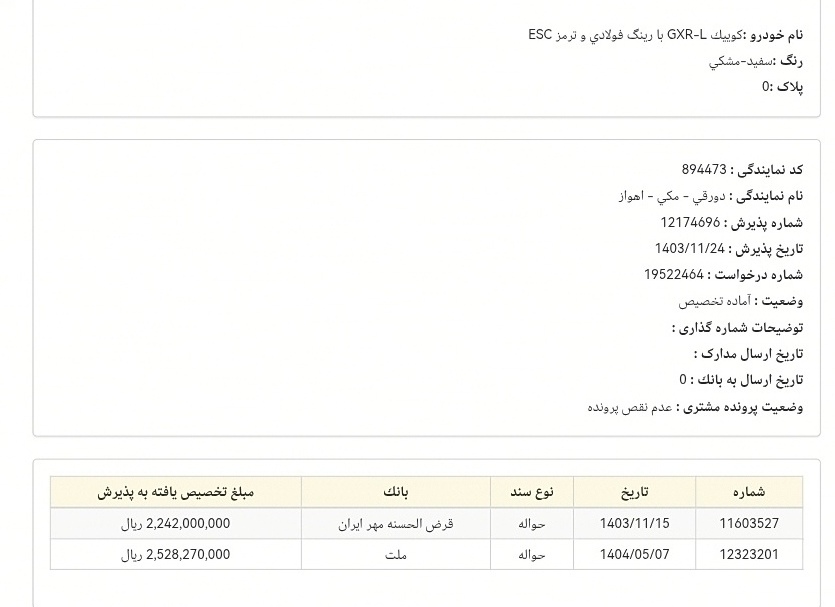 کوییک gxl تکمیل وجه 21 مرداد همین الان فاکتور شد