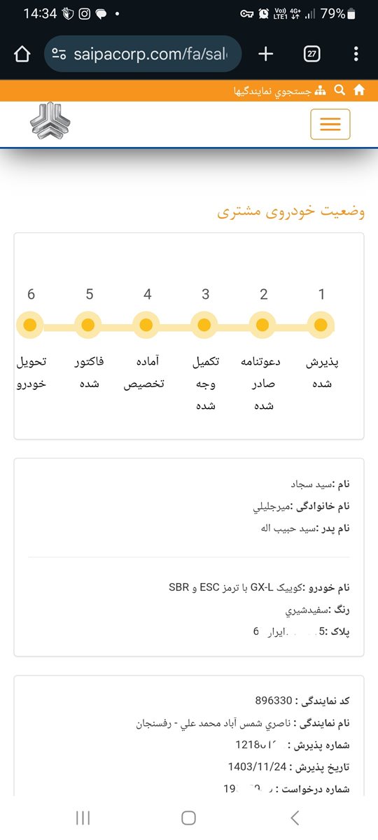 ساینا پیش فروش اسفند 403 : من حضوری رفتم شرکت سایپا من تکمیل وجه 3 مهر ماه هستم به من گفت اواسط بهمن فاکتور میشی