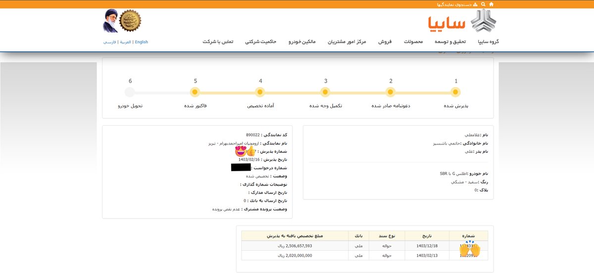 ساینا پیش فروش اسفند 403 : من حضوری رفتم شرکت سایپا من تکمیل وجه 3 مهر ماه هستم به من گفت اواسط بهمن فاکتور میشی