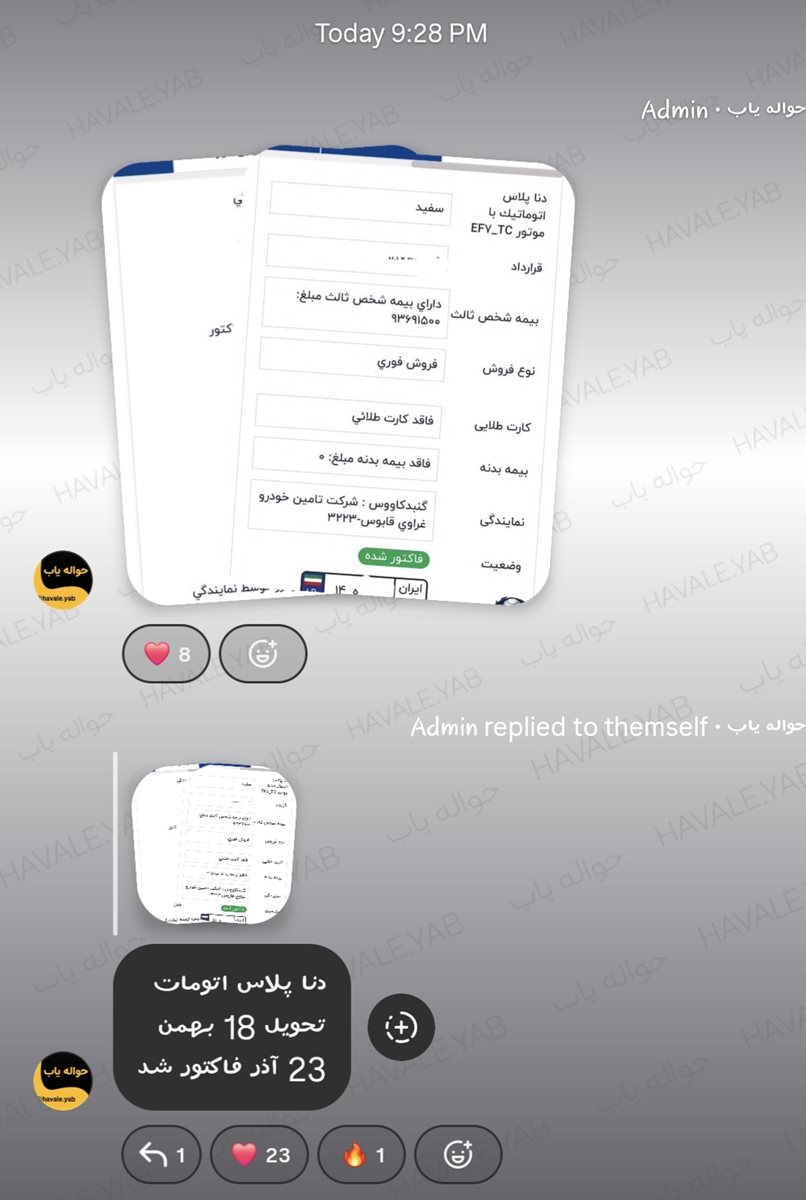 دنا اتومات فروش فوری ام تحویل 2 دی فاکتور نشدم اینجا تحویل بهمنی ها منتظر فاکتورن