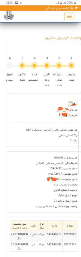 فوق العاده تحویل ۲۶ ابان v4 : خیلی خیلی ممنون بابت مشاوره جنابعالی ..بنده بدون اینکه برگ سبز بیاد استعلام گرفتم و کارت سوخت اقدام کردم هم تاییدیه پستی خورد و هم از شیراز پیامک اومد ثبت شده و با همون شماره مرسوله به ادرس من ارسال میشه و اینکه سخنگوی دولت گفته تا ۱۵ اذر پلاک گرفتن مشمول دریافت کارت سوخت میشن ولی خدا کنه این طرح تصویب نشه با سپاس انشالله فردا میرم ماشینمو v4 از نمایندگی استانمون تحویل بگیرم
