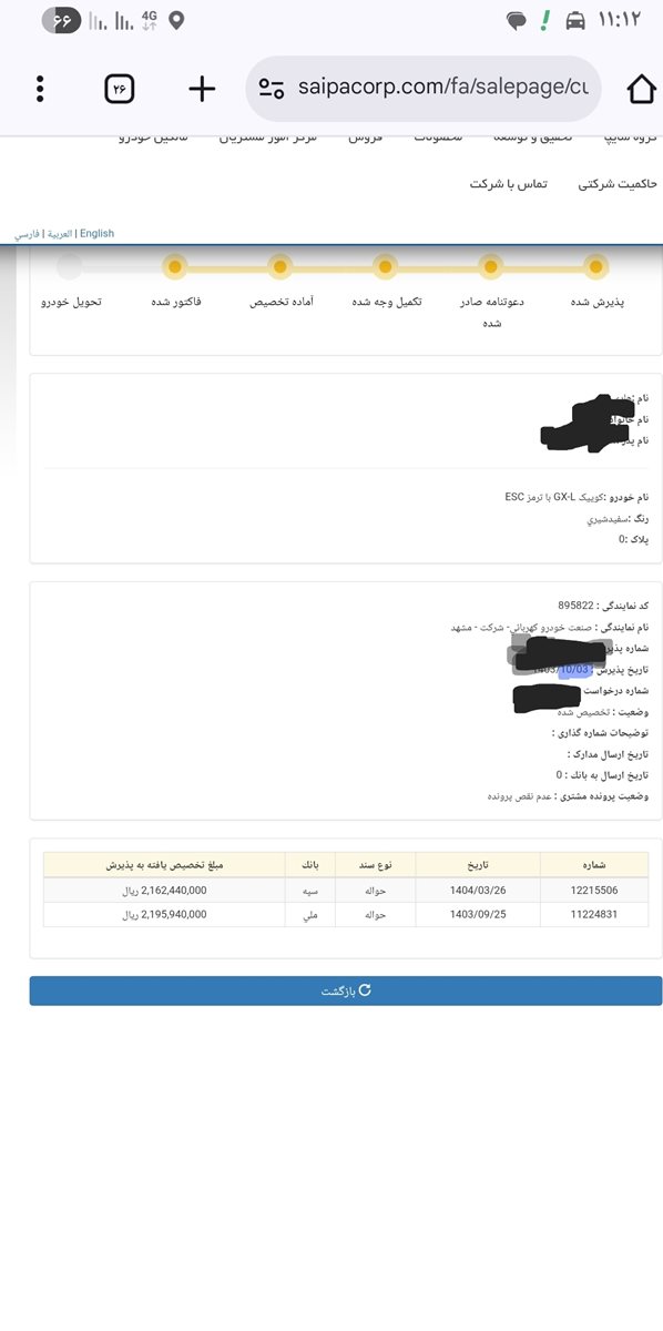 قبلا زنگ زدم سایپا گفت شما خرداد26 واریز کردی ولی 5 تیر به حساب ما اومده