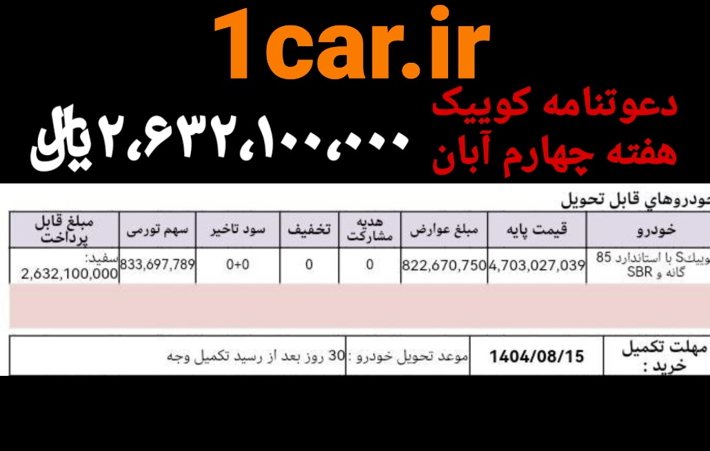 جواب سرکار خانم رهامی،بله دعوتنامه کوییکS ،آبان ماه با قیمت جدید صادر شده تا 15 آبان هم مهلت تکمیل وجه داره. مبلغ تکمیل وجه بدون آپشن و کارت طلایی 2,632,100,000﷼