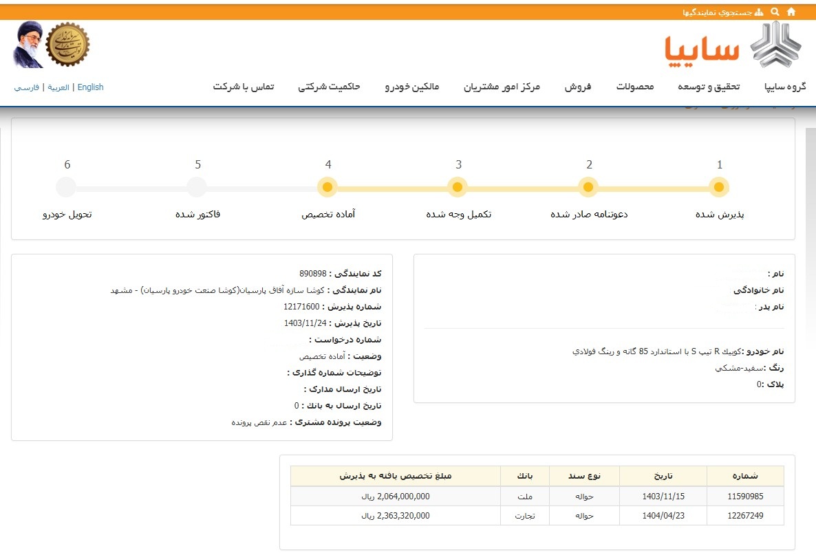 من پنجشنبه 8/1پرداخت کردم 263 میلیون کوییک اس تحویل آذر