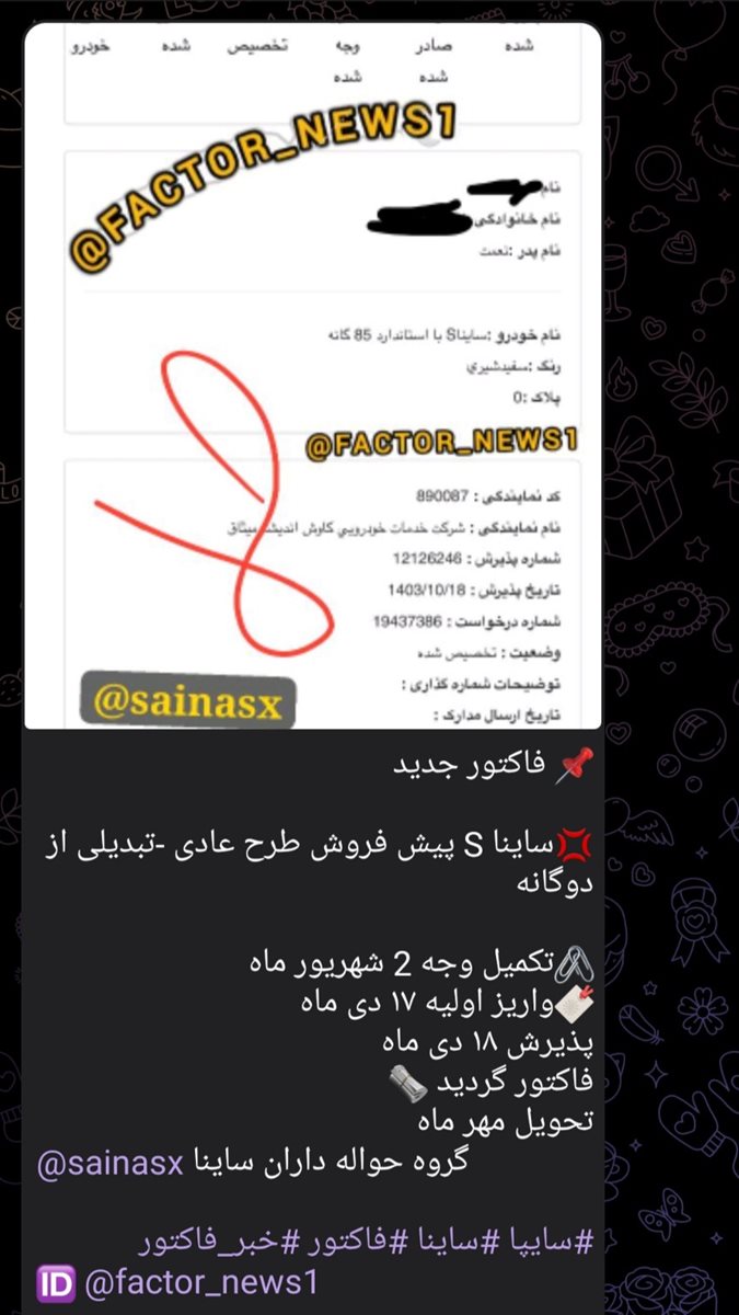 x5 سفید فروردین : سلام. مشابه شرایط شما. خیر تا کنون فاکتور نشده