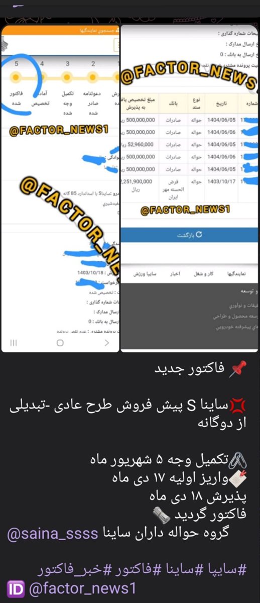 سلام به همگی خودرو بنده شاهین که مهرماه ۱۴۰۲ مبلغ اولیه رو واریز کردم و هفته چهارم اسفند ۴۰۳ بوده و تکمیل وجهcvtسخا ۱۹ اسفند تکمیل وجه ۲۰ اسفند ۱۴۰۳ بودم که بعد ۸ ماه تاخیر امروز فاکتور شد