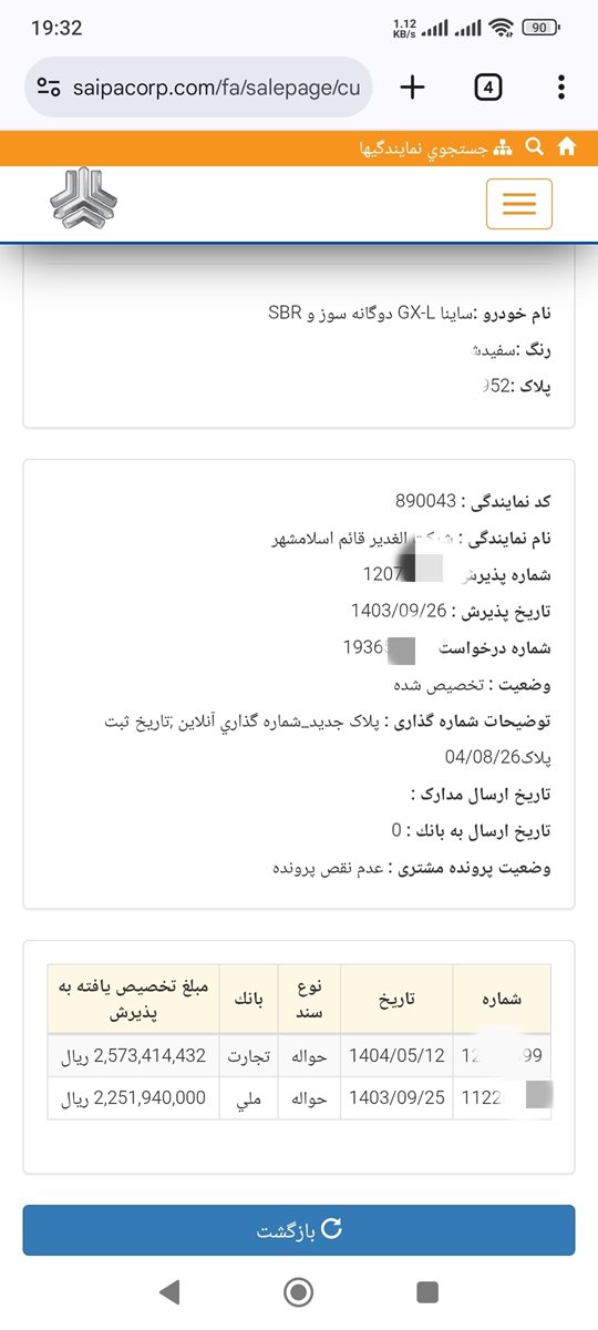ساینا تک تحویل شهریور تکمیل وجه 24 تیر 1بح تبدیل به sbr زدم الان فاکتور شد