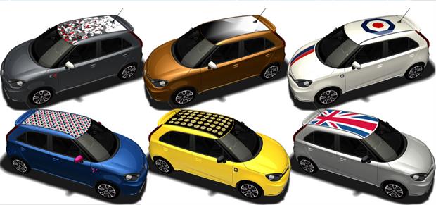 بنابراین ام جی 3 های عرضه شده در بازار ایران علیرغم ارائه با رنگ های شاد نظیر قرمز، آبی و زرد، همگی به صورت یک رنگ ارائه شده اند اما در بازار جهانی امکان سفارشی خودرو به شکل دو رنگ و نصب برچسب دلخواه نیز وجود دارد.