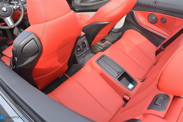 نسخه کابریو به دلیل این که به پکیج M بی ام و مجهز است کابین اسپرت تری دارد. چرم قرمز رنگ در کنار فرمان سه پره با لوگو M نشان دهنده متفاوت بودن آن به نسبت مدل گرن گوپه ای است که با تیپ لاکچری و استفاده از قطعات طرح چوبی در داخل اتاق به همراه چرم قهوه ای روشن به کلی حس متفاوتی را ارائه می کند.