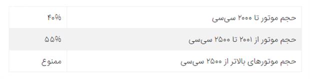 پرداخت عوارض زیر نیز جزو ملزومات خواهد بود. بهای این بسته ۸ گانه، ۶۰% ارزش خودرو تمام میشود.