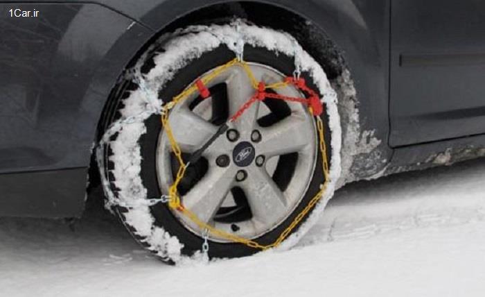 ۵)در این جا به آچار مخصوص نیاز دارید تا بتوانید بست های که در زنجیر چرخ هستند و با چرخاندن آنها ،زنجیر چرخ را به لاستیک محکم کنید.آچار را در قسمت بیضی شکل بگذارید و حلقه ی از زنجیر را در جهت منحنی بست بچرخانید(این حلقه از زنجیر در سوراخ بست ثابت می باشد).دقت داشته باشید زمانی که زنجیر را جدا می کنید این بست ها را وضعیت اولیه خودشان بازگردانید.