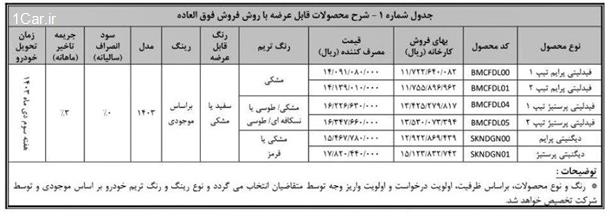 شرایط واریز وجه برای متقاضیان سامانه یکپارچه خودروهای داخلی شرکت بهمن موتور از ساعت 10 صبح روز پنجشنبه مورخ 1403/06/01 لغایت دوشنبه 1403/06/12 مطابق جدول ذیل فعال می باشد.