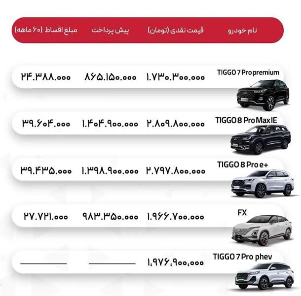 فروش نقد و اقساط (60 ماهه) محصولات فونیکس شرکت مدیران خودرو از امروز شنبه 3 شهریورماه 1403 با موعد تحویل 90 روز کاری در نمایندگی های مجاز این شرکت آغاز خواهد شد.