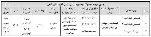 پیرو بخشنامه پیش ثبت نام طرح عادی به شماره ١٤٠٣/٧٢٢٥٩ مورخ ١٤٠٣/١١/٠٣ و قرعه کشی انجام شده در تاریخ ،١٤٠٣/١١/٠٨ به اطلاع متقاضیان محترم و عاملیت های مجاز میرساند، امکان تکمیل فرآیند ثبت نام و واریز وجه، جهت آندسته از منتخبین اصلی طرح مذکور که حائز شرایط بوده و به شرکت بهمن موتور اعلام شده است، برای محصولات فیدلیتی الیت و ریسپکت تیپ ٢ به صورت پیش فروش با قیمت غیر قطعی و به صورت آنـلاین فـراهم گـردیـده است.