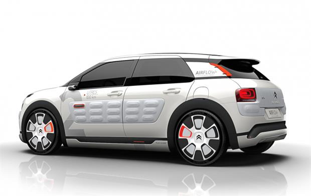 گفتنی است، این کانسپت بر اساس شاسی بلند C4 Cactus (SUV) طراحی شده که هدف اصلی آن نیز، رسیدن به مصرف سوخت قابل قبول میباشد. در حقیقت در سپر جلوی این خودرو 3 ورودی هوای مجزا وجود دارد که جریان هوا را برای رسیدن و خنک نگه داشتن موتور تنظیم میکند، در حالی که تجهیزات جانبی باعث میشود تا جریان هوا در اطراف خودرو با الگویی خاص عبور کند.