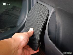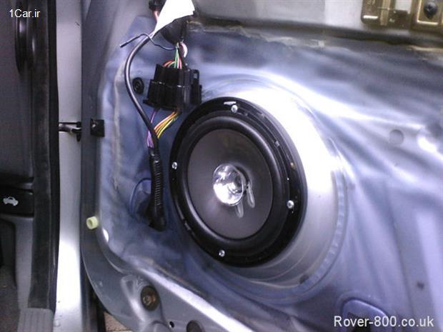 در صورت فلزی بودن پنل از اره مویی استفاده کنید. نوار لاستیک را بین ستون عمودی درب و درب قرار دهید. سیمی که از رادیو ضبط بیرون میآید را از طریق این نوار عبور دهید. چند لایه چسب برق دور سیم هایی که بین درب و پنل درب قرار دارند، بپیچید. این کار موجب حفاظت سیم ها از لبه های تیز موجود در این قسمت میشود. بلندگوها را روی پنل درب قرار دهید. پنل را روی درب قرار دهید و برای قرار گرفتن پنل در محل اصلی خود از چند پیچ استفاده کنید. سیم ها را تا پشت بلندگوها بکشید. مجددا پنل را روی درب نصب کنید.