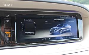 در حقیقت، مرسدس بنز S-Class آن قدر آینده نگر است که به فناوری های قدیمی اکتفا نمیکند. به جای صفحه کیلومتر شمار متداول، بنز S-Class از یک نمایشگر 12.3 اینچی LCD استفاده کرده است. یک نمایشگر مشابه نیز، در بالای کنسول مرکزی برای کنترل سیستم سرگرمی و HVAC تعبیه شده است. هر دو این نمایشگرها روی داشبورد قرار گرفتهاند. شاید همگی ما به تماشای تلویزیونی که روی دیوار نصب شده باشد، عادت کرده باشیم. کلیدهای کنترلی HVAC (سیستم سرمایشی و گرمایشی) این خودرو درست زیر دریچه های هوا قرار گرفته اند. سادگی و استفاده آسان نیز، از خصوصیات این کلیدها محسوب میشود؛ اما جای شگفتی دارد که چرا سایر خودروسازان از طراحی کلیدهای مرسدس بنز استفاده نمیکنند؟ برای این که بیشتر به توانایی های مرسدس بنز S-Class پی ببرید، شاید لازم باشد کمی با جوی استیک نصب شده بر روی کنسول ور بروید. با این اهرم امکان انجام هر کاری از تغییر رنگ نور داخل کابین تا میزان تهویه داخلی با انتخاب شش پیام عملکردی را دارید. علی رغم وجود خصوصیات فراوان، استفاده از نمایشگر لمسی چندان هم آسان نیست. منوها به صورت منطقی دسته بندی شدهاند ولی چیدمان آن ها هنوز برای ارتقای بیشتر جا دارد. به عنوان مثال، از پیغام های متعددی برای هر حالت رانندگی استفاده میکنیم، اما باید آنها را در میان چندین منوی دیگر بیابیم. در حقیقت، کاربر نمیتواند از یک روش برای تنظیم منو به سلیقه خود استفاده کند.
