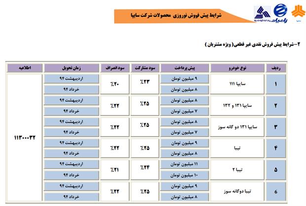 ساینا پیش فروش ۱۲ اسفند