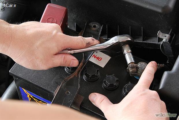ابتدا کابل قطب منفی، سپس کابل قطب مثبت را از باتری جدا کنید.