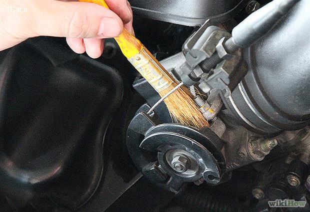 هرگونه جرم و کثیفی را با برس از روی سطح موتور پاک کنید. برای این کار میتوانید از برس رنگ یا فرچه پلاستیکی استفاده کنید.