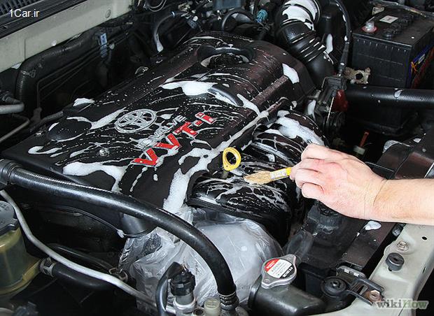محلول به دست آمده را با برس روی موتور بکشید. آن را قسمتهای کثیفتر بمالید و بگذارید حسابی خیس بخورند.