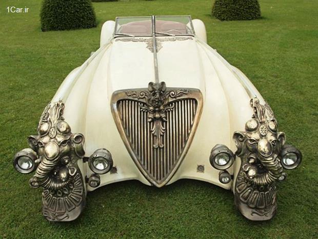 جلو پنجره به طور استادانه‌ای با تمثال گانش، خدای هندو، تزیین شده و نقش و نگار دو فیل، حکاکی‌های سمبلیک و تزیینات طلا کوب، بدنه کرم‌رنگ را تزیین کرده‌اند. داخل کابین نیز استادانه طراحی شده و از روکش چرم قهوه‌ای Faux و نقره ساخته شده است. طول 6.7 متری و عرض 2.75 متری آن سبب شده که برای رانندگی در جاده مناسب نباشد، اما می‌توانید تا سرعت 128 کیلومتر برساعت با آن برانید. پیش‌بینی می‌شود که ماه آینده با قیمت 25,000 پوند در مزایده Coys Blenheim Palace عرضه شود.