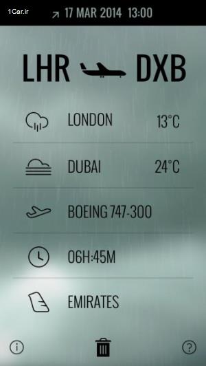 اپلیکیشن Flight با ظاهر زیبای خود در هر زمان قادر است که سه پرواز را ذخیره کند و کار کردن با آن بسیار راحت است. اطلاع از وضعیت آب و هوایی به شما بسیار کمک میکند تا در مورد پرواز خود تصمیم بگیرید. متاسفانه اپلیکیشن به شما اجازه نمیدهد که این اطلاعات را به اشتراک بگذارید یا برای دیگران ایمیل کنید، اما اکثر نیازهای شما را برطرف میکند. در مجموع میتوان گفت این اپلیکیشن برای کسانی که دائماً در حال پرواز هستند، ابزار بسیار مفیدی است.