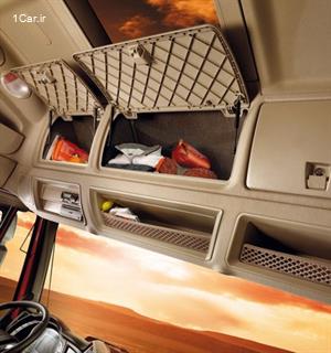 تختخواب راننده نیز با عرض 80 سانتی متر و طول بیش از 2 متر، در کنار سیستم تهویه مطبوع درجا با صدای بسیار کم، آرامش دل پذیری را برای راننده به ارمغان می آورد. البته از یخچال 35 لیتری داخل کابین که می تواند به فریزر نیز مجهز شود، نباید غافل شد.